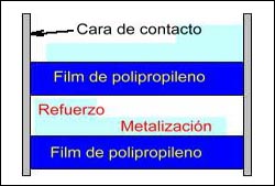 Estos capacitores monofásicos de tipo autorregenerable, están construidos con dieléctrico de flim de polipropileno metalizado. La metalización del film se realiza mediante una vaporización al vacío de aluminio, zinc, o una aleación de ambos metales, disponiendo una capa de espesor reforzado en su extremo de conexion, lo que le permite al capacitor soportar elevadas corrientes de maniobra. Esta característica constructiva de tipo autoinductivo y de bajas pérdidas, asegura una elevada vida útil, con una muy buena estabilidad de la capacitancia a lo largo del tiempo. |